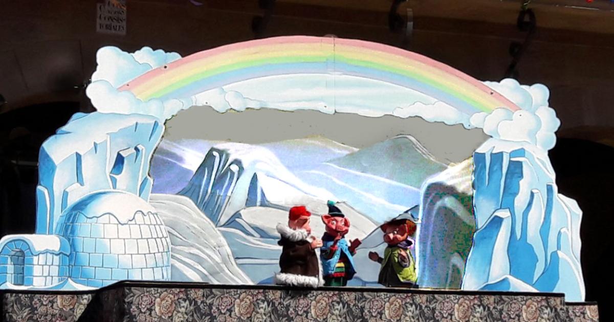 Els tres porquets viatgen en globus, visiten el Pol Nord i els Aiguamolls de l’Empordà, empaitats sempre pel llop que de tan encalçar-los, i d’anar sempre sol, acaba fent-s’hi amic. Espectacle de titelles de guant català de la companyia de més tradició del país.