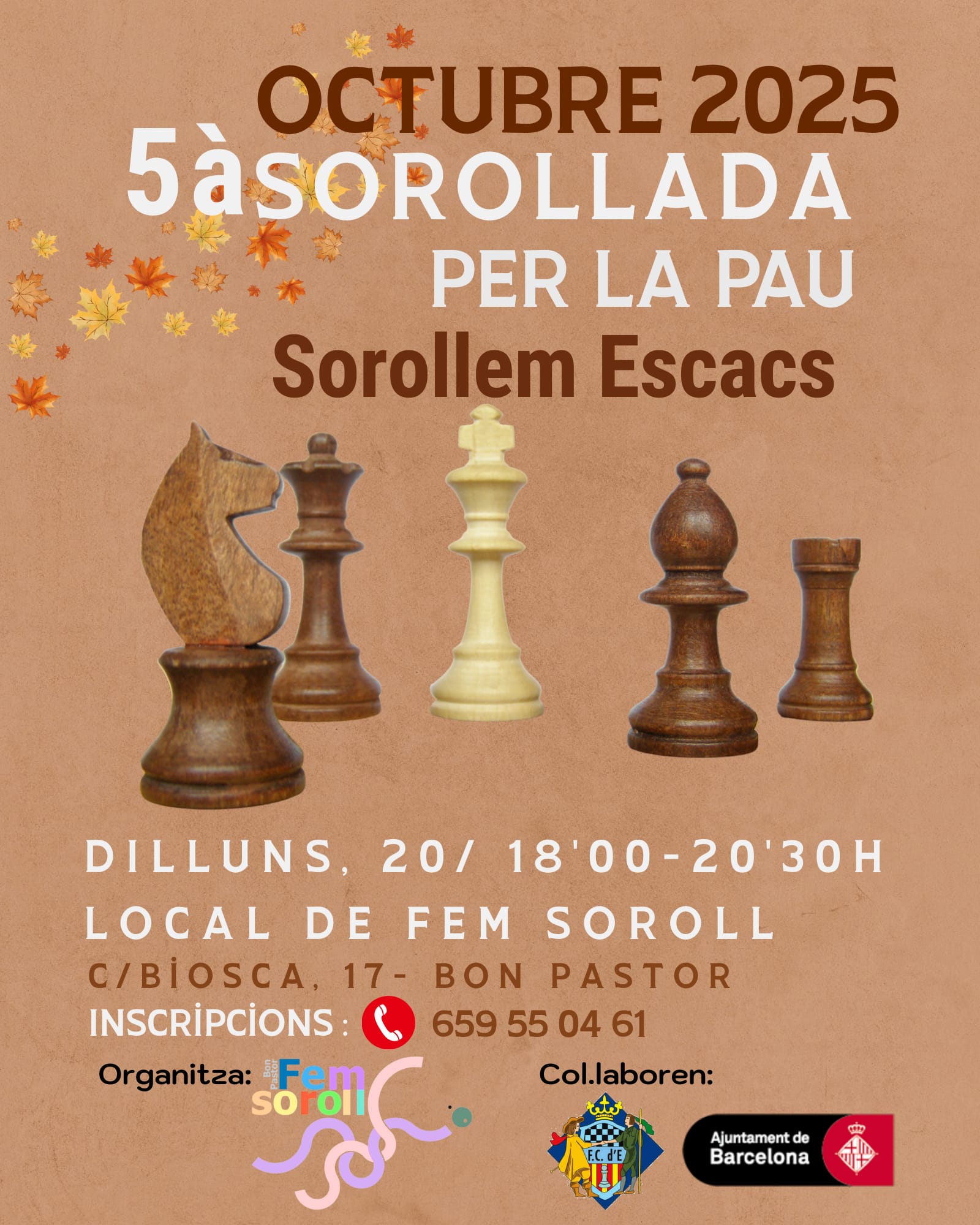 Sorollem Escacs Per la Pau. El torneig que organitza Fem Soroll cada tardor. Al nostre local i amb gent meravellosa. L'objectiu és passar-ho bé i competir esportivament mentre fem amistats i riem. No t'ho perdis.