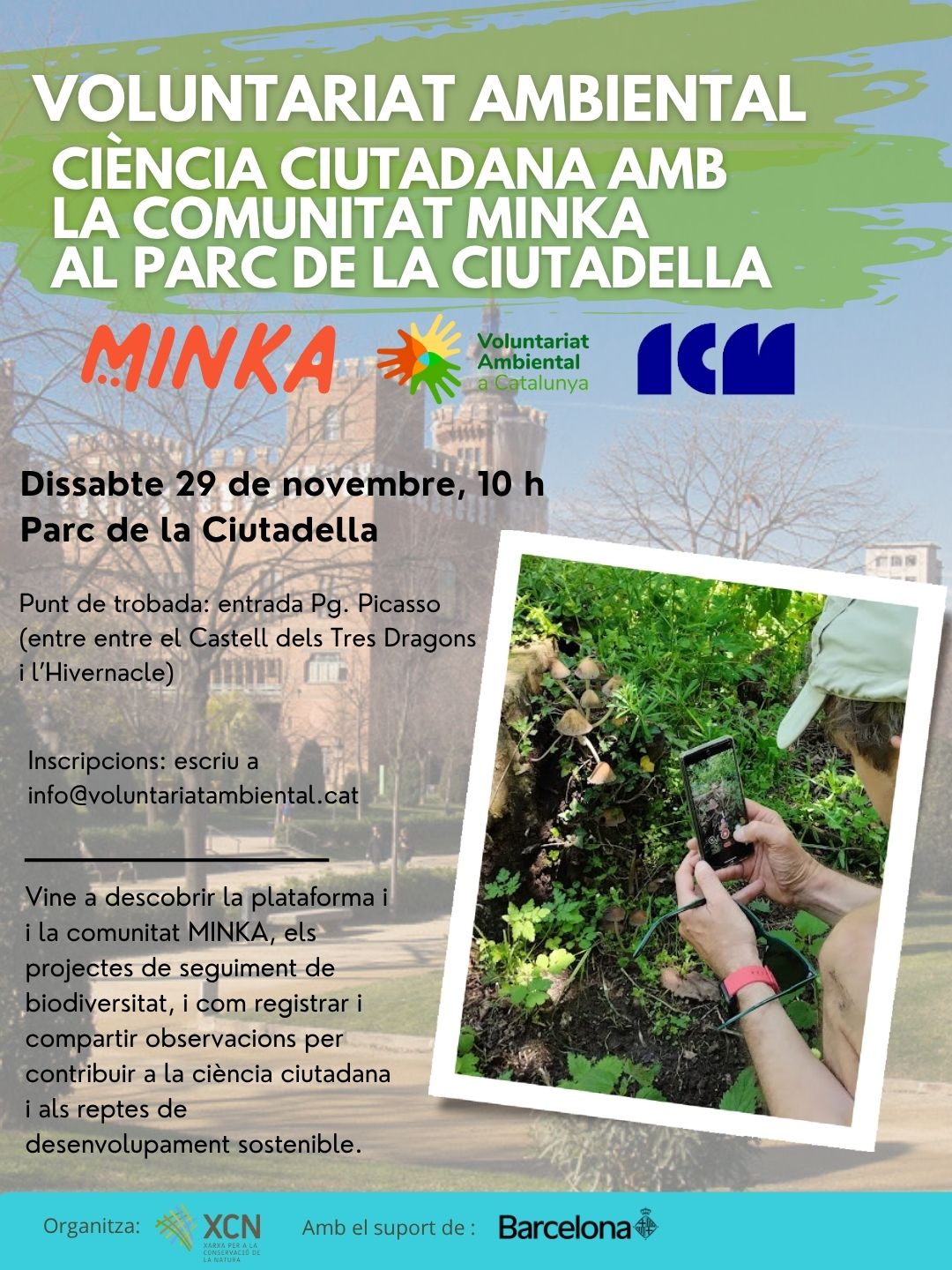 Dissabte 29 de novembre vine a descobrir com formar part de la comunitat Minka i com pots participar en la recerca pel mediambient, en una sortida de voluntariat ambiental i ciència ciutadana al Parc de la Ciutadella de Barcelona.