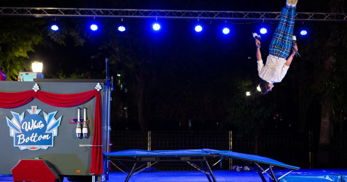 Piruetes, “malabailes”, proeses i malapteses. Elegància, extravagància, llums i lluentor… barrejat amb molt d’humor, això és “White Bottom” una picada d’ullet al “Black Bottom”, un ball afroamericà que es va popularitzar a principis del segle XX.