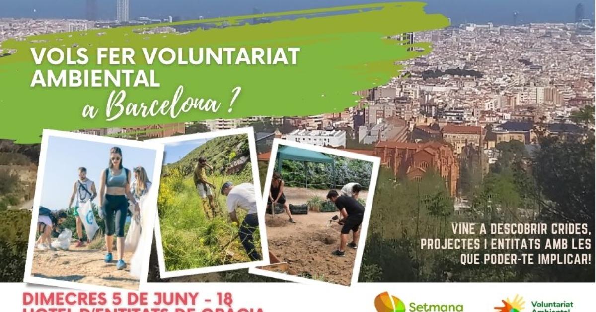 Vine dimecres 5 de juny, Dia Mundial del Medi Ambient, a l'Hotel d'Entitats de Gràcia a descobrir crides, projectes i entitats per implicar-te en el voluntariat ambiental a Barcelona!