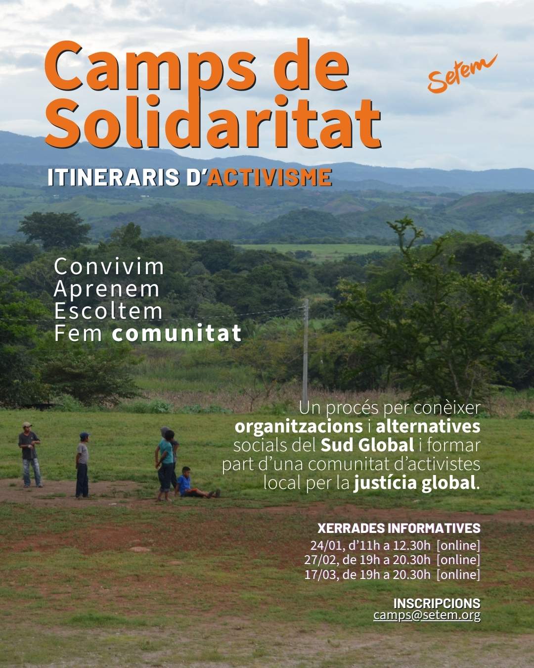 Els Camps de Solidaritat es tracta d’un projecte que ofereix la possibilitat de conèixer organitzacions i alternatives socials del Sud Global i formar part d’una comunitat d’activistes local per la justícia global. Un procés formatiu i d’acció col·lectiva adreçat a persones adultes que vulguin aprofundir en les causes de les injusticies globals i implicar-se en processos de transformació social.