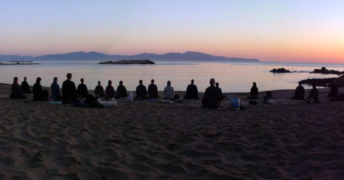 El primer zazen (meditación zen) del día, si las condiciones meteorológicas lo permiten, tiene lugar frente al mar, en la playa Muscleres frente a las ruinas de Empúries, antes de la salida del sol. Una inmejorable oportunidad para descubrir, experimentar y profundizar en la práctica de zazen, en un marco natural privilegiado junto a monjes, monjas y personas que se inician a la práctica del zen. Inscripción abierta, plazas limitadas.