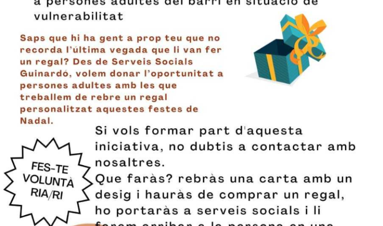 Aquest Nadal, ajuda'ns a fer arribar un regal a persones adultes del barri en situació de vulnerabilitat