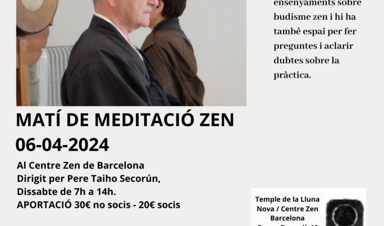 El Centre Zen de Barcelona es va fundar l’any 1979 quan un petit grup de persones interessades en la pràctica del budisme zen i que van conèixer l’ensenyança del Mestre Deshimaru, van decidir seguir aquest camí. Entre ells hi havia Pere Secorún que ha dirigit la comunitat, sangha, des de llavors i és el president del Centre Zen Barcelona i l’abat del Temple de la Lluna Nova, Shingetsuji.