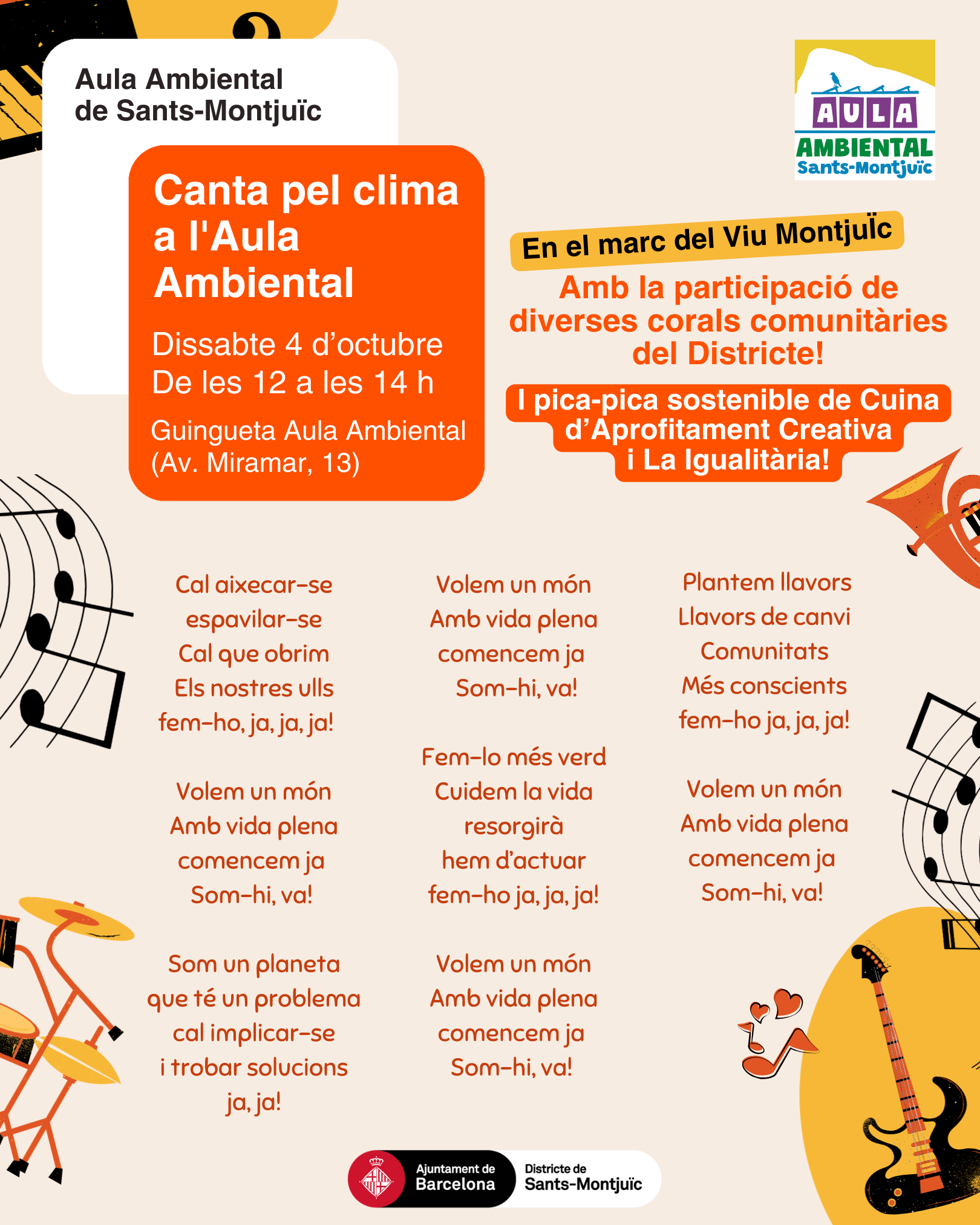 Des de l'Aula Ambiental volem donar visibilitat a aquesta iniciativa i és per això que dissabte 4 d'octubre a les 12 h, dins el marc de #viumontjuïc, us convidem a gaudir d'aquesta cantada comunitària a la guingueta!