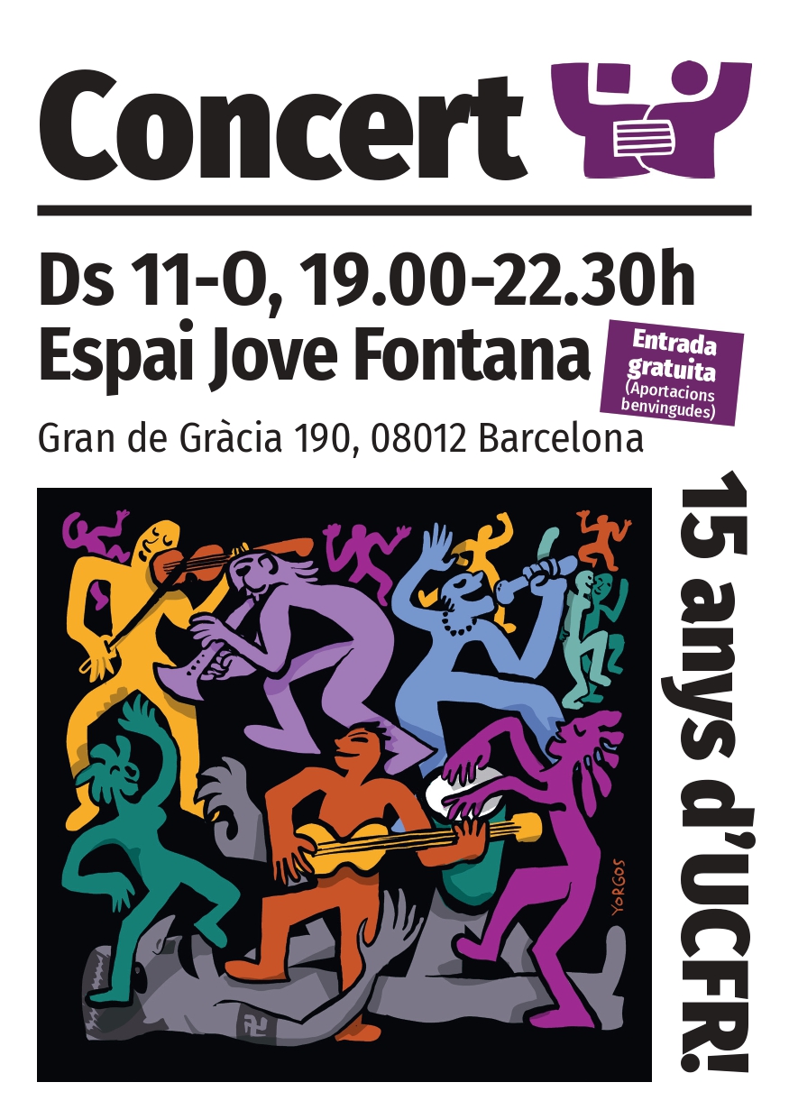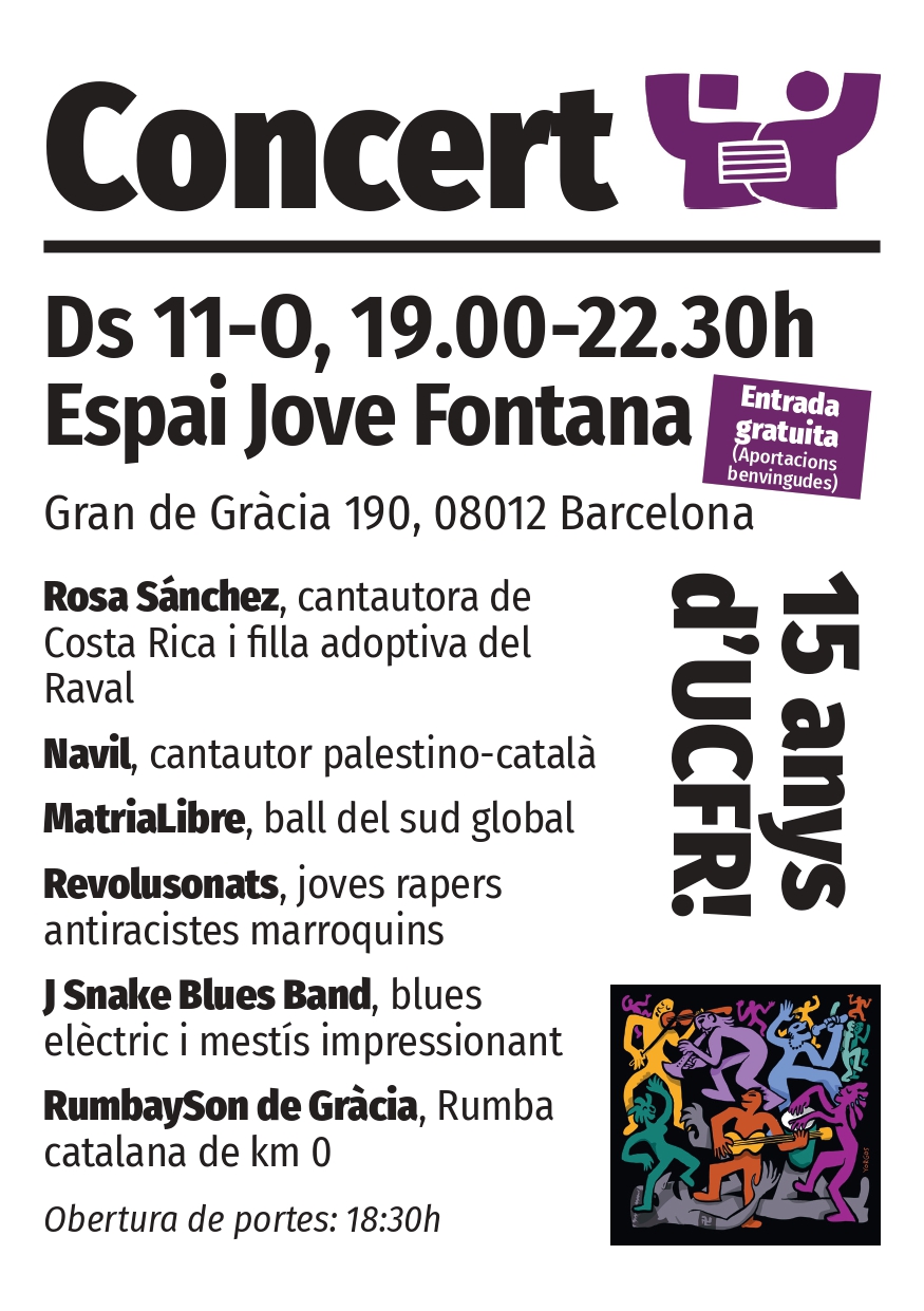 CONCERT Antiracista - 15è Aniversari UCFR- Diss. 11 Oct - 18:30 h - Espai Jove La Fontana