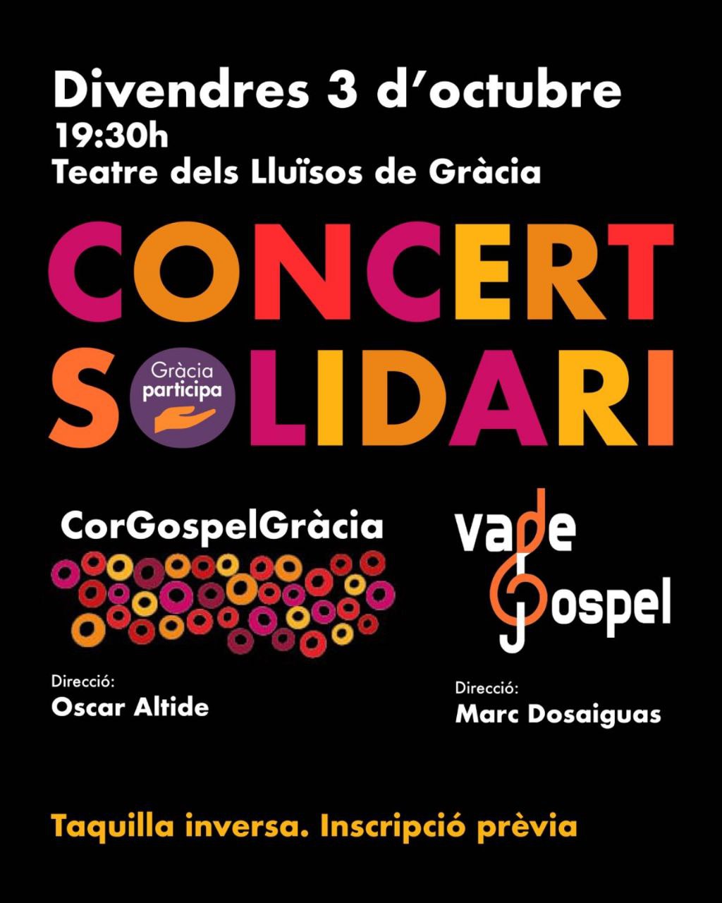 L'esdeveniment tindrà lloc al Teatre dels Lluïsos de Gràcia 📍 i podrem escoltar els concerts del Cor Gospel Gràcia dirigit per Oscar Altide i del grup Va de Gospel dirigit per Marc Dosaiguas.