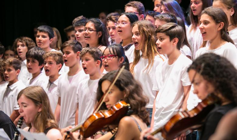 La mateixa formació serà també l’encarregada de posar la instrumentació de la segona proposta del programa, on uns nou-cents alumnes de primer a quart de primària escenificaran una classe d’anatomia musical. El meu cos és un repàs al cos humà a través de set cançons que no oblida ni les coreografies ni les disfresses, ni, per descomptat, la implicació del públic assistent. Els infants de 10 a 12 anys, per la seva banda, oferiran l’espectacle Hoka hey! La cançó del bosc, on cinc-cents nens i nenes ens cantaran l’aventura de tres petits indis que lluiten per defensar el bosc on viuen, tot un al·legat a favor del respecte a la natura. I, per últim, els més grans, els alumnes de l’ESO, han preparat un concert basat en les llegendes populars que amaguen cinc fonts històriques de la ciutat de Barcelona. A Cançons d’aigua, uns tres-cents alumnes de secundària posaran lletra i música a les històries i els mites que s’amaguen darrere de racons tan particulars com el brollador de la Catedral, la font de Sant Just o la font de Santa Eulàlia.