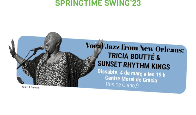 El cap de setmana vinent, la mateixa sala gracienca programarà en viu una de les grans artistes del panorama actual del jazz de New Orleans: Tricia Boutté & Sunset Rhythm Kings. Acompanyada de talent local català a la trompeta, clarinet, saxo, trombó, piano, contrabaix i bateria, Tricia Boutté ens connectarà amb la llarga llista de brillants jazzistes que formen part de la seva nissaga musical.