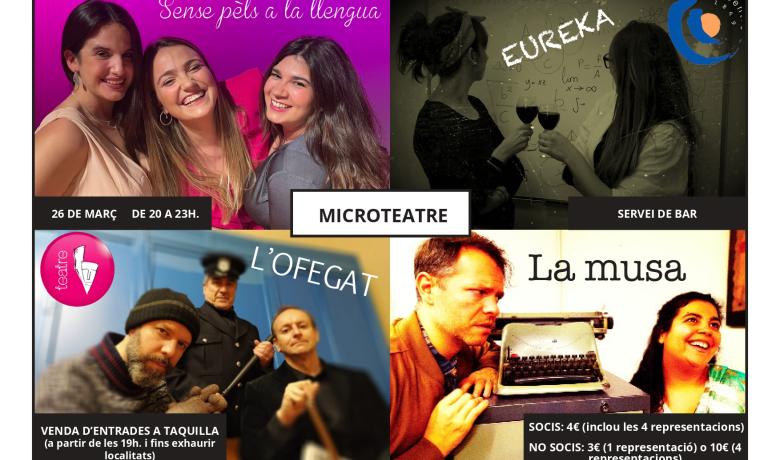 Sense deixar el barri de Gràcia, «El Centre» del carrer Ros de Olano ens ofereix dues propostes més pel mateix cap de setmana. Divendres tindrà lloc la primera nit de microteatre que organitza l'entitat, amb quatre espectacles diferents que els espectadors podran anar triant durant la vetllada. Els passis començaran a les vuit del vespre i les entrades —4 euros per cada funció— només es podran adquirir el mateix dia a les taquilles del centre. Diumenge, en canvi, l'escenari del Centre acollirà un musical de llarg format, La taverna de la Rosita, que ens trasllada a un poble de pescadors on es desenvolupa un triangle amorós amb la Guerra de Cuba com a teló de fons. L'espectacle començarà a les sis de la tarda i les entrades es poden trobar aquí.
