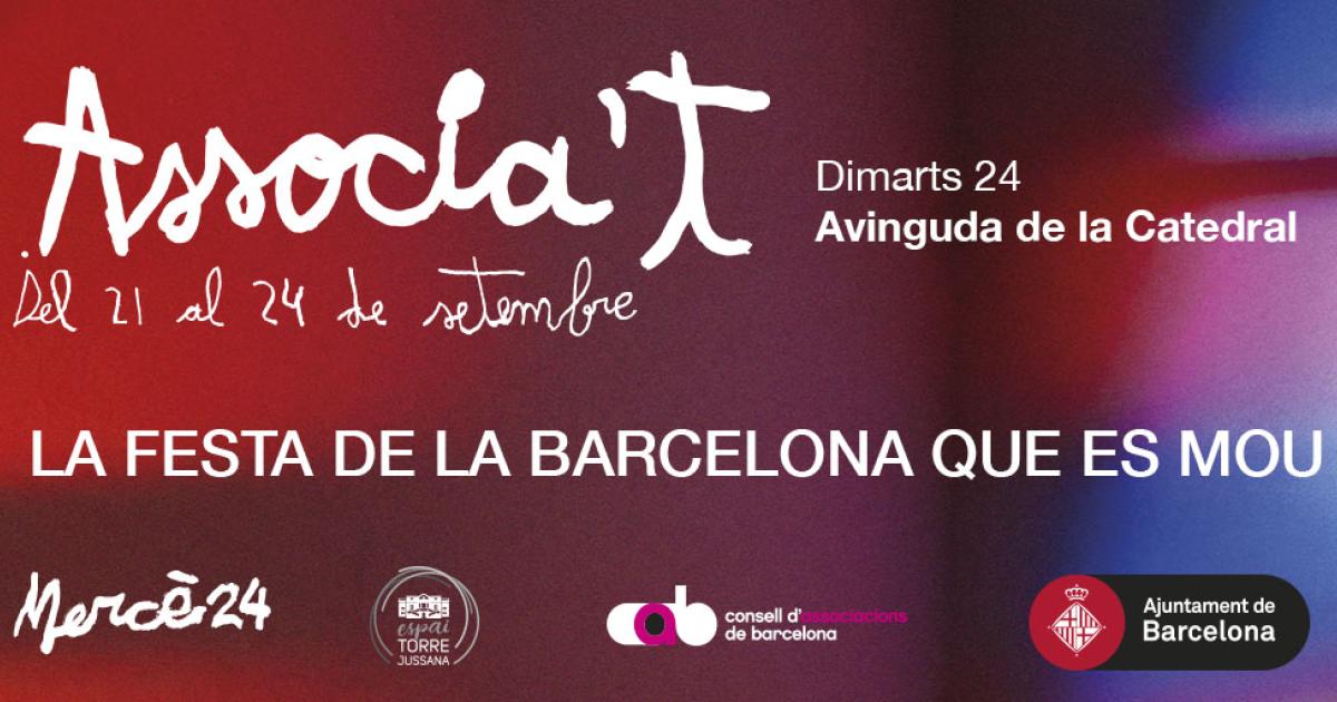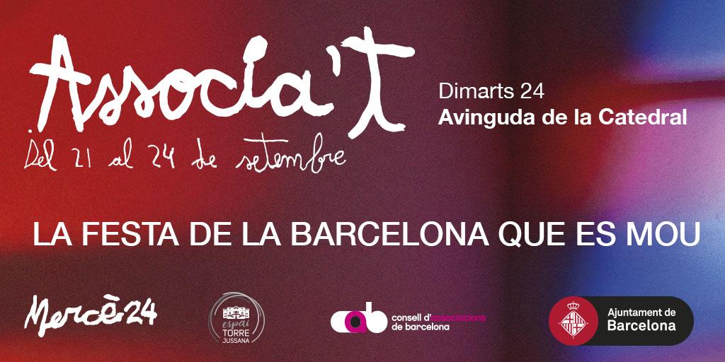 La Festa de l’Associa’t tancarà la seva programació dimarts 24 de setembre a l’escenari de l’avinguda de la Catedral, en col·laboració amb l’ICUB. I ho farà organitzant quatre activitats vinculades amb les arts escèniques i de gran format que convertiran aquesta fi de festa en una trobada ben musical.